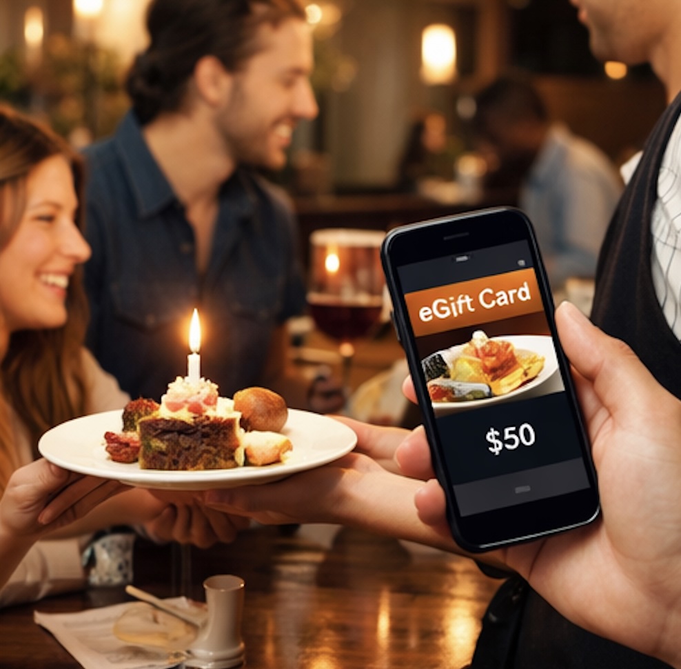 Automatic birthday messages that drive visits, plus gift cards that sell year-round.
